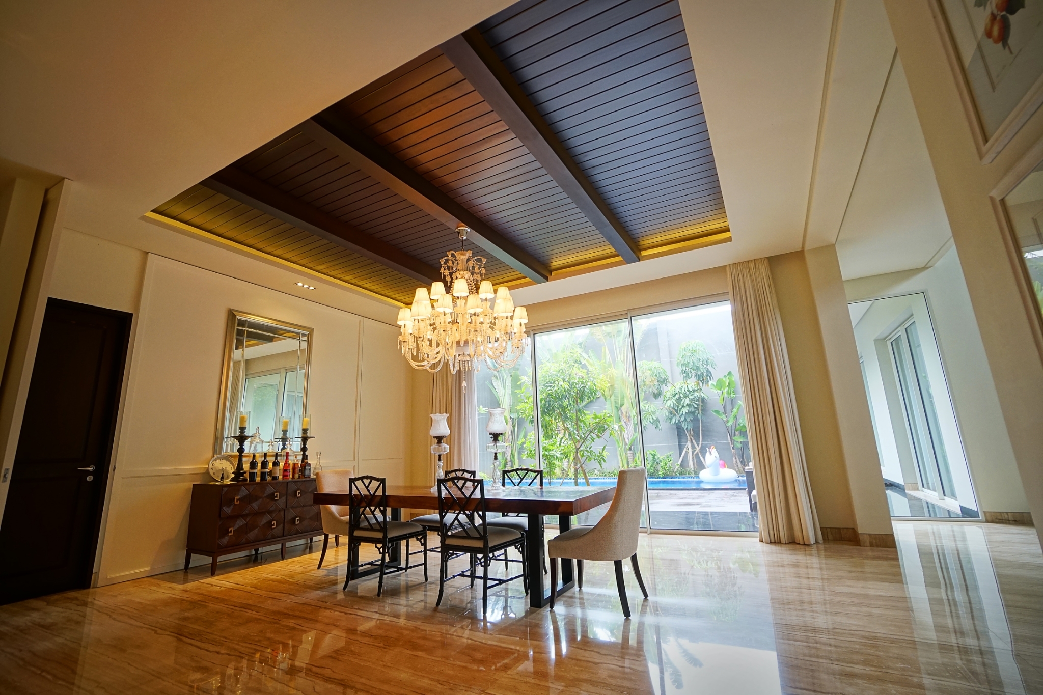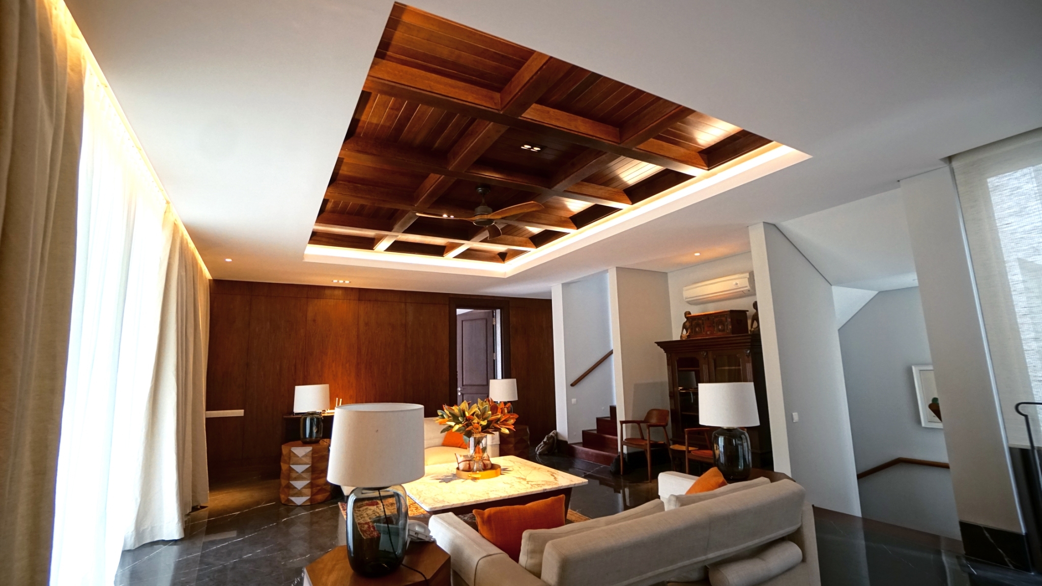 Kayu Merbau dapat digunakan sebagai lumbersering karena kekuatan dan keawetannya yang tinggi (kelas I–II), serta tahan terhadap hama dan kelembapan. Warna coklat kemerahan hingga coklat tua dengan serat lurus memberikan kesan hangat dan elegan, menjadikan langit-langit tampil mewah sekaligus awet dalam jangka panjang.