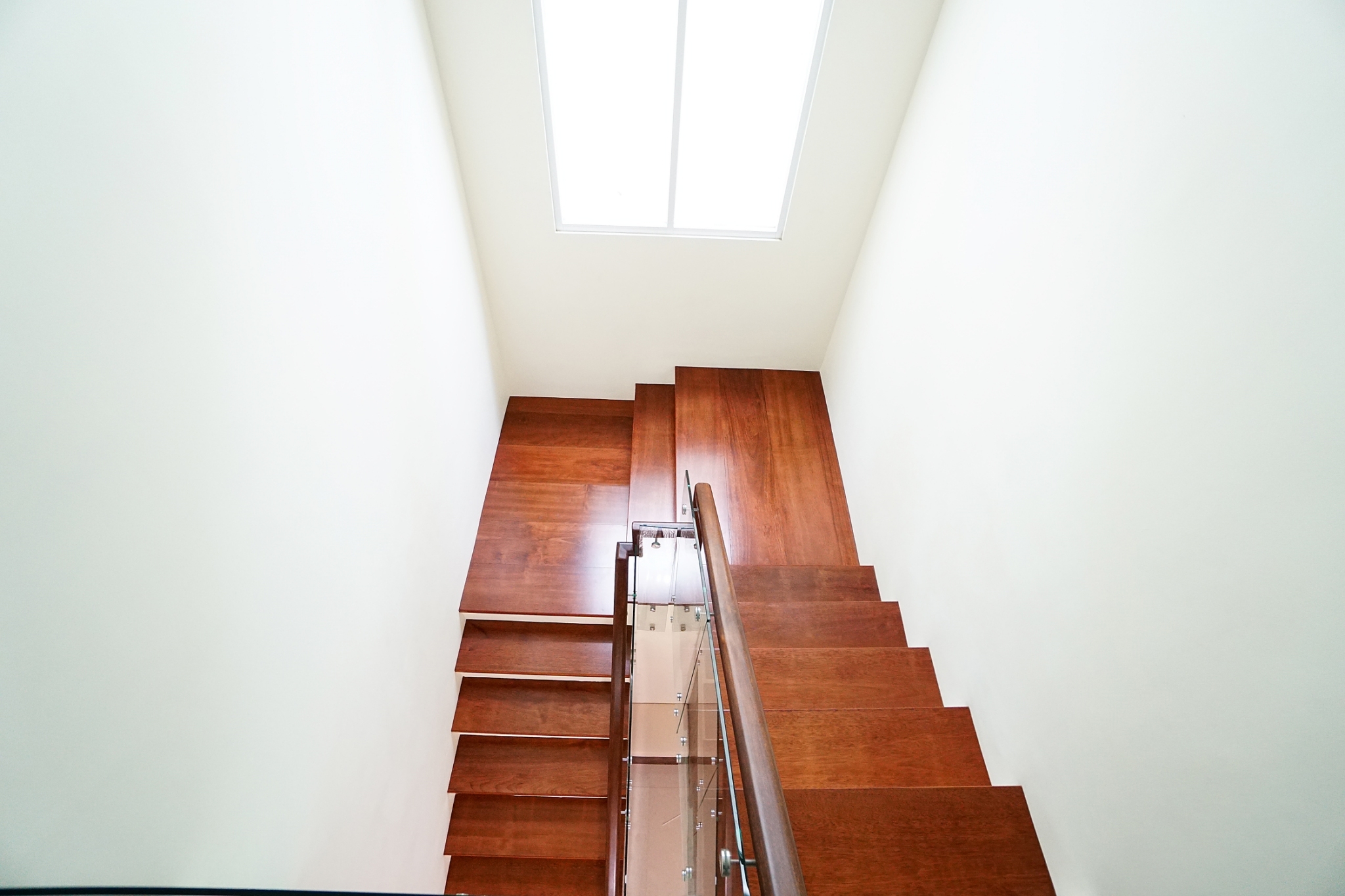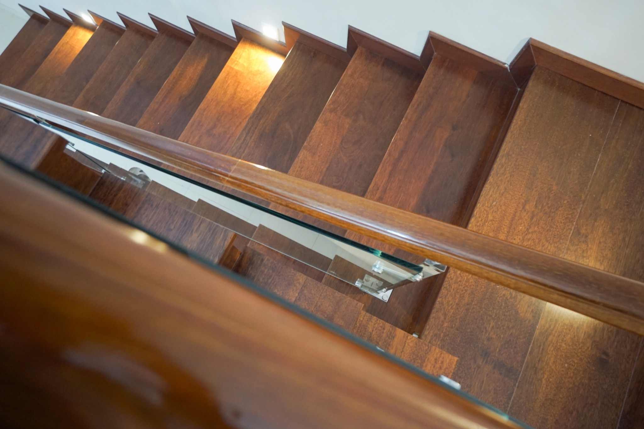 Kayu Merbau cocok digunakan untuk trap tangga karena termasuk kayu keras dengan tingkat keawetan tinggi (kelas I–II) serta tahan terhadap serangan hama. Seratnya yang lurus dan warna coklat kemerahan hingga coklat tua memberi kesan hangat dan mewah, sekaligus memastikan tangga tetap kuat, stabil, dan indah dalam jangka panjang.
